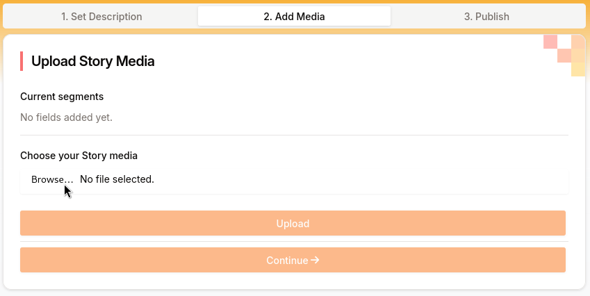 Now the Story is ready for some media to be added. Click “Browse” to select your files: