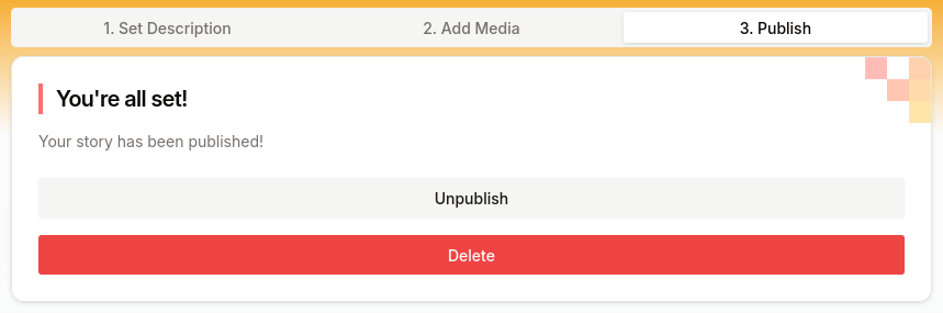 After publishing your Story, you can always unpublish (hide) or delete it here: